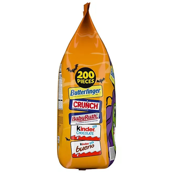 Enjoy a crowd-pleasing mix of favorites with the Ferrero Halloween Candy Assortment, featuring 200 individually wrapped mini chocolates from some of the most beloved brands. This festive variety pack includes Baby Ruth, Crunch, Kinder Chocolate, Butterfinger, and Kinder Bueno—delivering everything from crunchy and nutty to creamy and smooth. Whether you’re preparing for trick-or-treaters, candy buffets, or seasonal parties, this chocolate assortment offers the perfect mix of textures and flavors to satisfy every sweet tooth. Great for sharing… if you don’t keep them all for yourself!