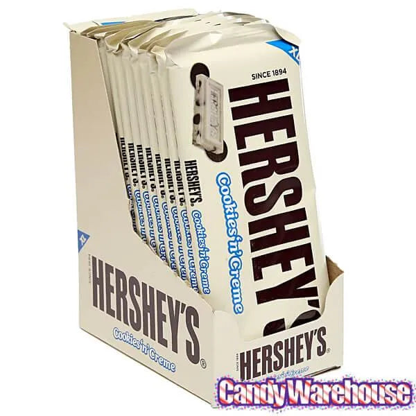 Display box contains 12 Hershey’s Cookies n Creme Jumbo Candy Bars, each with a weight of 4 ounces.