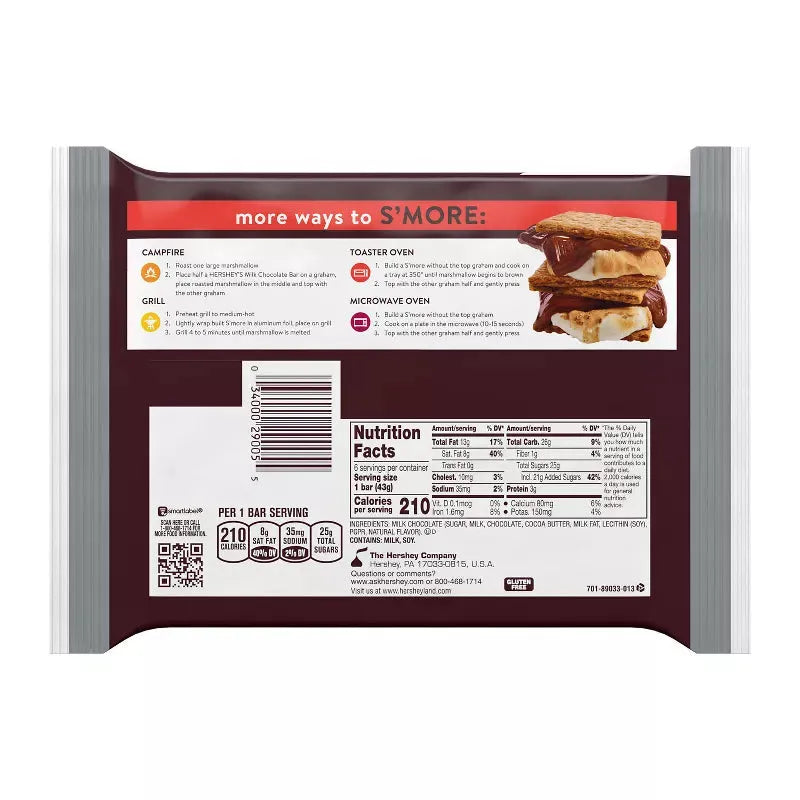 Enjoy the classic, creamy taste of HERSHEY’S Milk Chocolate Candy Bars with this 6-pack of full-size bars! Perfect for snacking, sharing, and baking, these kosher-certified, gluten-free chocolate bars are wrapped for lasting freshness and on-the-go convenience.