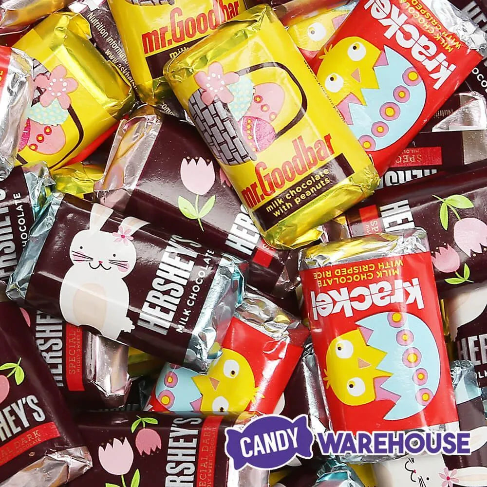 This fabulous assortment of classic Hershey’s flavors come in bite-sized miniatures featuring Easter wrappers that are great for spring celebrations. Assortment includes miniature:Hershey’s Milk Chocolate BarsKrackle BarsMr. GoodbarsHershey’s Special Dark Chocolate Bars Bag contains 17.1 ounces of Easter Hershey’s Miniatures Chocolate Bars… that’s about 55 pieces. Shipping Weight ~ 1.5 lbs. Kosher Certified.