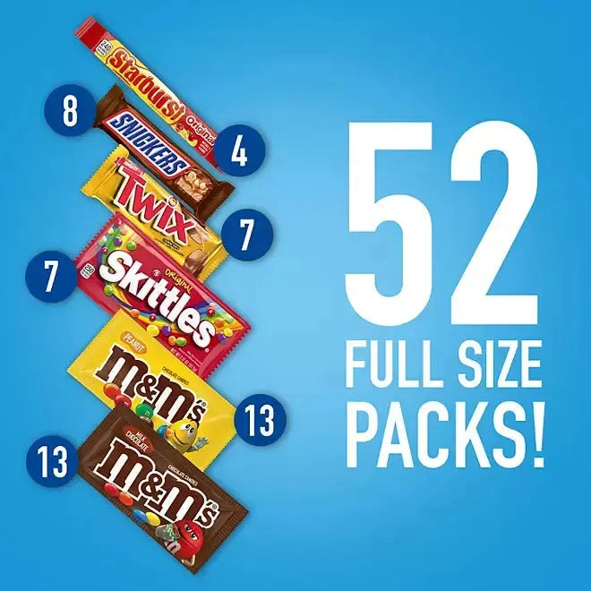 Includes: 52 full-size candies, variety pack flavors: