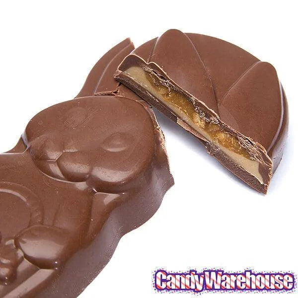 A delicious milk chocolate rabbit filled with creamy caramel and peanuts is wrapped in festive Easter bunny foil and packaged in a cute box perfect for a Easter basket.