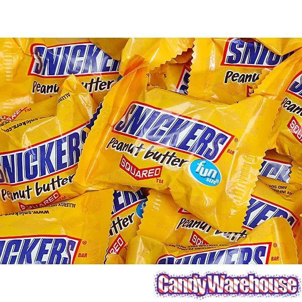 Bag contains 12 Snickers Peanut Butter Squared Fun Size Candy Bars.